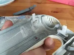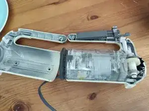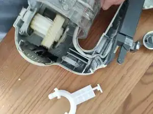 Теперь весь моторный узел может выйти из корпуса. Вам также нужно удалить переключатель, который находится в ручке.