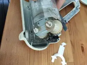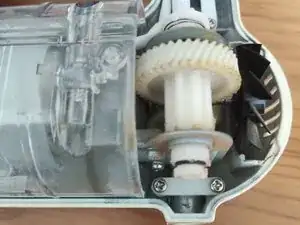 Когда вы вытаскиваете корпус мотора из корпуса устройства, белый пластиковый механизм может выскочить, так как под ним натянуты пружины.