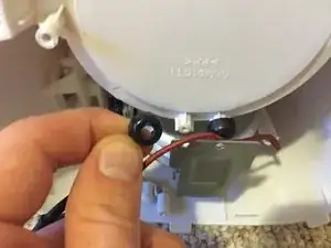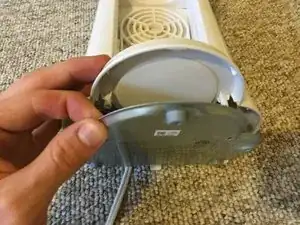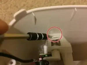 Воспользуйтесь лопаткой или отверткой с плоским жалом, чтобы отвести белую защелку от корпуса кнопки питания.