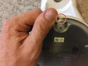 Снимите белую заглушку с держателя шурупов.