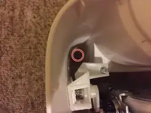 Сдвиньте кнопку питания влево от защелки, пока она не освободится, затем протолкните кнопку питания через корпус кофеварки и оставьте её внутри корпуса.