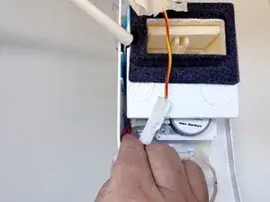 Найдите вспомогательный разъем и отсоедините его от контроллера. Возможно, вам понадобиться подвинуть фиксирующие застежки пальцем.