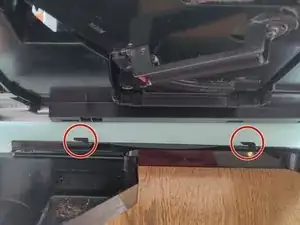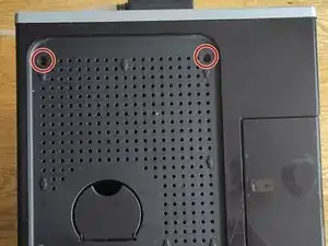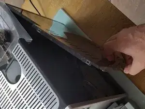 Начинайте снимать защёлки с задней стороны плоской отвёрткой. При этом слегка приподнимайте крышку. Вставляйте отвёртку как можно круче в прорези сверху и затем подденьте вверх. Боковые панели при этом остаются прикреплёнными к устройству. Крышка также соединена кабелем, поэтому поднимайте её осторожно.