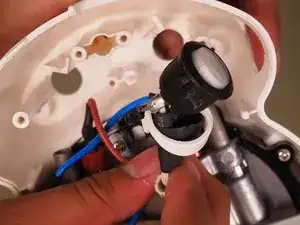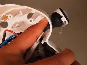 Ослабьте белое кольцо переключателя и сожмите его, чтобы протолкнуть через отверстие в основании.