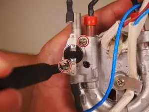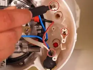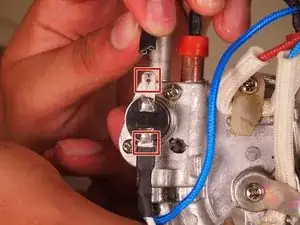 Отвинтите два винта 7,6 мм крестовой отвёрткой Phillips #1 и снимите температурный выключатель.