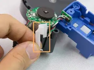 Снимите пластиковый фиксатор, удерживающий провода мотора.