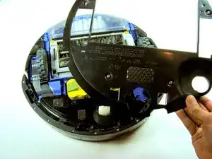 Когда все винты максимально ослаблены, приподнимите нижнюю панель вверх и снимите её с Roomba.