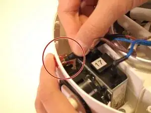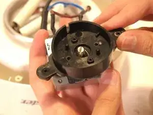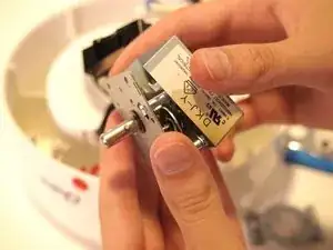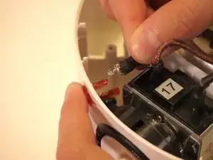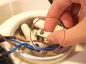С левой стороны устройства аккуратно извлеките индикаторную лампочку из её посадочного места рядом с таймером, потянув за термозащиту, покрывающую коричневый провод.