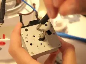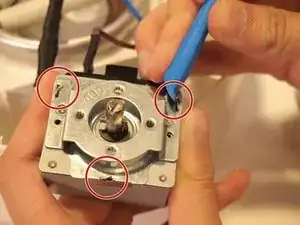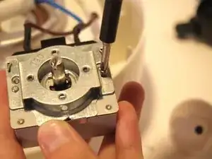 Осторожно — не мешайте синим и коричневым проводам, соединяющим нагревательный элемент с таймером.
