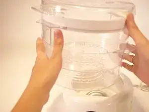 Снимите пластиковые ярусы пароварки и убедитесь, что устройство отключено.