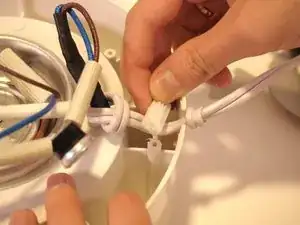 Используйте ножницы, чтобы перерезать стяжку, связывающую синие и коричневые провода.
