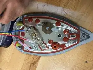 Примечание — плату нельзя полностью отсоединить вместе с проводкой утюга из соображений безопасности.
