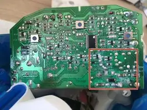 Отлично выполнено. Если коррозия не была обширной и не повредила дорожки, ваш утюг снова будет работать исправно. Если повреждения серьезные, вам, боюсь, придется отремонтировать или заменить плату.