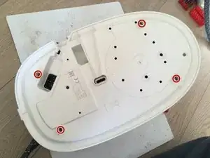 Используйте биту Torx 20, чтобы удалить четыре винта, отмеченные на основании.