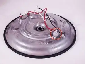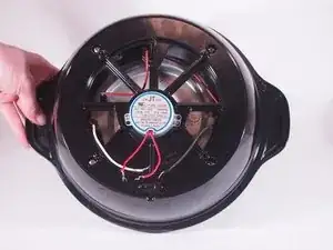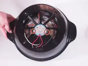 Снятие нижней крышки открывает внутренние части попкорницы. Основание удерживает мотор, установленный в центре, и провода для сетевого шнура и нагревательного элемента.
