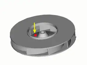 - Аккуратно просверлите небольшое отверстие в основании рабочего колеса, достаточное для прохода отвёртки.