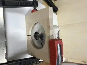 Я использовал деревянные брусочки, чтобы поддержать довольно лёгкий и хрупкий алюминиевый вентилятор при отворачивании гайки в центре, крепящей его к валу привода.