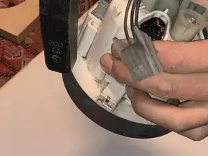 Выньте мотор из посадочного места. Он не прикручен, а просто стоит на резиновых подвесах. 4-пиновый разъём также просто сдвигается вверх из держателя.