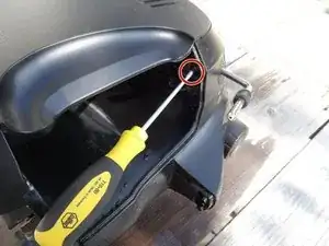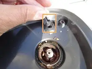 Защитный экран из черного пластика для жерновов крепится на винт Phillips. Удалите его, чтобы снять защитный экран.