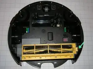 Откройте и снимите крышку щетки с фиксирующего зажима (зелёная стрелка).