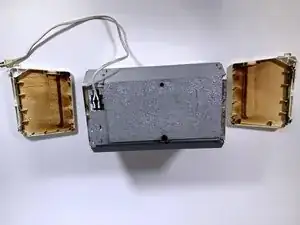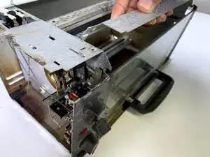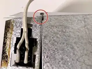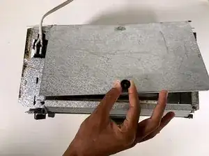 Снимите серую металлическую деталь с передней нижней части (они будет сверху, поскольку тостер перевёрнут вверх дном).