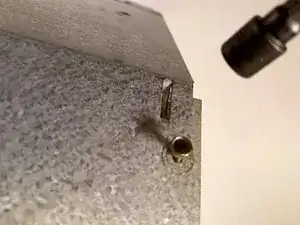 Продолжая использовать ключ-головку 1/4 дюйма, выверните острый винт длиной 19 мм с каждой белой пластиковой боковой панели.