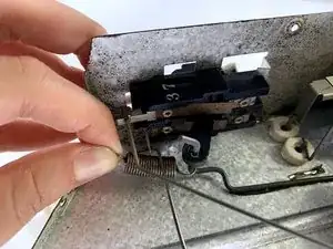 На стороне тостера, где расположено большинство внутренних механизмов, находится пружина. Удалите её, отсоединив каждый конец пружины от корпуса тостера.