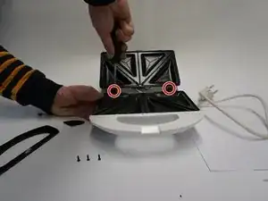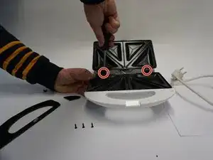 Открутите четыре винта Phillips #0 на черной верхней панели с внутренней стороны тостера.