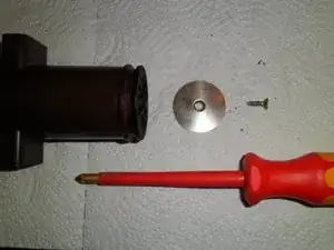 С другой стороны поршня находится кофейный фильтр. Он удерживается на месте винтом PH2. Когда винт будет выкручен, металлический фильтр можно снять.