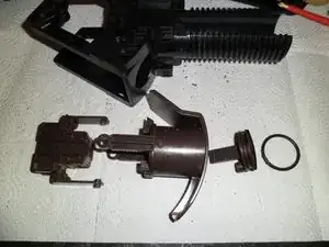 Зубчатый механизм от направляющей можно немного повернуть и также снять с группы заваривания. На втором изображении также показано уплотнительное кольцо нижнего поршня.