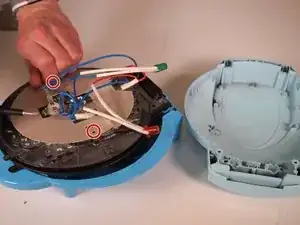 Удалите два винта 5 мм, удерживающие красные и синие проводники платы, с помощью крестовой отвертки Phillips #1.