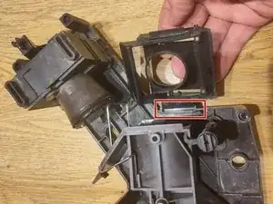 После снятия пластиковой крышки вы сможете легко извлечь 3 детали. Они также могут частично выпасть при снятии крышки.