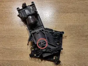 Снимите 3 винта Torx10 (рис. 3, красная отметка) и снимите пластиковую крышку. Будьте осторожны — детали могут выпасть.