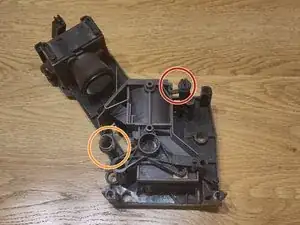 Отключите разъём (оранжевый кружок на картинке 2) и управляйте мотором постоянным напряжением 12 В. Напряжение должно быть приложено к той части разъёма, которая всё ещё прикреплена к чёрному корпусу. Полярность можно менять для определения направления вращения мотора. Также может подойти 9‑вольтовая батарея.