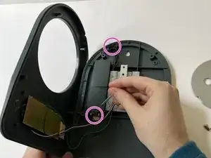 Удалите винты в позициях «5 часов» и «11 часов», используя мини-отвёртку.