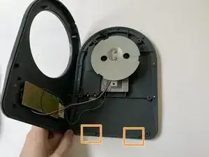 Поднимите верхнюю половину пластиковой оболочки в сторону. Будьте осторожны, плата электроники соединяет обе части.