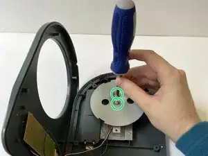 Удалите винты в позициях «1 час» и «7 часов», используя мини-отвёртку.