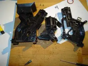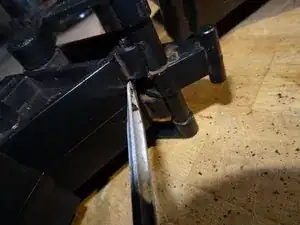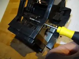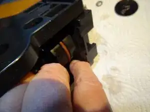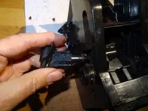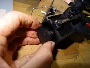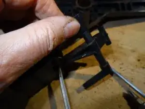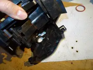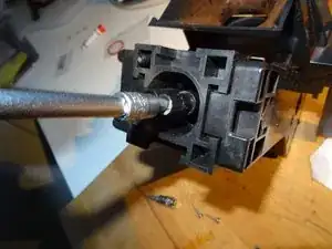 Это самая сложная часть: нужно выпрессовать рычаг из его гнезда. Для этого вставьте отвёртку между рычагом и держателем и сильно надавите наружу. Теперь он должен выйти — надеемся!