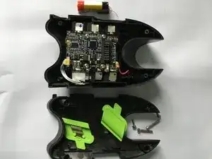 На втором изображении показан снятый аккумуляторный блок. Отвинтите четыре винта в каждом углу с помощью отвертки Torx10. Обратите внимание, что винты в нижних углах длиннее. Снимите крышку, а зеленые кнопки также можно удалить.