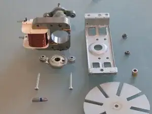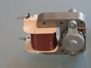 После снятия болта, шайбы и вентилятора установите экран обратно на устройство, чтобы было удобнее открутить три винта с крестообразным шлицем PH2, которые крепят мотор к задней панели. Снимите вентилятор с втулкой, теперь Вы сможете открыть доступ к двум другим гайкам на 7 мм, которые удерживают двигатель вентилятора. Удалите обе гайки и извлеките двигатель из корпуса.