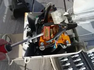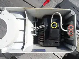 Снимите винт, удерживающий разъём кабеля на крышке двигателя.
