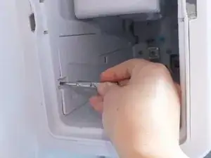 Отверните винт 0.05 мм на левой боковой панели внутри отделения для льда крестовой отвёрткой #0.