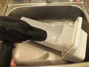 Выньте лоток для льда и поместите его в раковину. Используйте фен, чтобы полностью разморозить лоток.