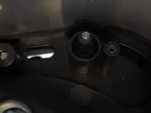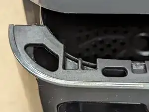 Загляните внутрь камеры фритюрницы и найдите штифт в верхнем левом углу. Это часть механизма предохранительного выключателя.