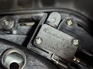 Установите узел предохранительного выключателя на место и закрепите двумя винтами, которые вы сняли ранее.