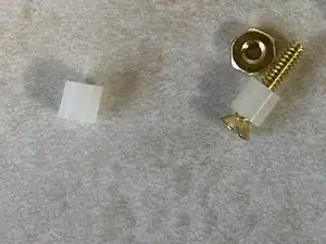 Я приобрёл 2 плоских винта из нержавеющей стали #6 длиной 1 дюйм с нейлоновыми стопорными гайками, чтобы закрепить предохранительный выключатель в верхней крышке в нужном месте. Также я взял два нейлоновых расстояющих фланца 1/4 дюйма, чтобы разместить их между корпусом выключателя и верхней крышкой вместо отломанных частей.