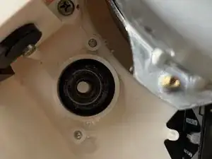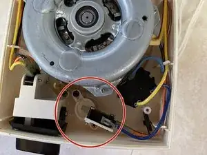 Снимите нижнюю крышку и осмотрите внутреннюю сторону верхней крышки в поисках предохранительного микровыключателя. Если ваш выключатель, как у меня, оторвался, это произошло потому, что места для крепления винтов в верхней крышке сломались и отломились. Поскольку заменить верхнюю крышку невозможно, правильный способ ремонта — прикрепить выключатель обратно в исходное положение с помощью небольших машинных винтов.