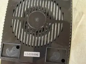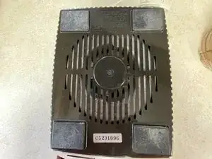 Теперь снимите резиновые ножки, чтобы открыть отверстия для винтов, удерживающих верхнюю и нижнюю крышки вместе. Выверните эти 4 винта под ножками крестовой отверткой #2. Один из моих винтов просто проворачивался, потому что крепление в верхней крышке отломалось.