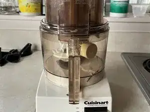 Я унаследовал оригинальный винтажный кухонный комбайн Cuisinart 70-х годов. После нескольких использований он перестал работать. Я выяснил, что проблема в предохранительном выключателе, который замыкается, когда чаша и крышка установлены на прибор. Это предотвращает включение устройства, когда руки находятся в опасной зоне. Убедитесь, что вы правильно устанавливаете чашу и верхнюю часть и поворачиваете их вправо! Если этого не сделать, переключатель не сработает и устройство не будет работать!