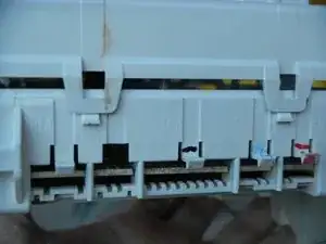Только две внешние защёлки имеют фиксирующий выступ, удерживающий блок управления на поперечине. Средняя защёлка служит только для поддержки.